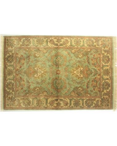 Les tapis Agra sont des tapis de haute qualité fabriqués dans la ville d'Agra, en Inde. Agra est une ville historique située dans l'État de l'Uttar Pradesh en Inde. Elle est célèbre pour ses monuments emblématiques tels que le Taj Mahal. Les tapis Agra sont fabriqués dans cette région depuis plusieurs siècles. Les tapis Agra sont souvent caractérisés par des motifs floraux élégants, des motifs géométriques complexes et des motifs persans traditionnels. Certains tapis présentent également des motifs inspirés de l'art moghol, avec des motifs de palmettes, de fleurs et de vignes. Ils sont noués à la main selon la technique du nœud persan. La densité des nœuds peut varier en fonction du tapis spécifique, mais les tapis de haute qualité auront généralement une densité de nœuds élevée pour assurer une durabilité et une résistance à l'usure optimales. Les couleurs des tapis Agra sont souvent riches et vibrantes, avec une palette comprenant des rouges profonds, des bleus, des verts, des beiges et des tons terreux. Les teintures utilisées peuvent être naturelles ou synthétiques, selon le tapis et le fabricant.