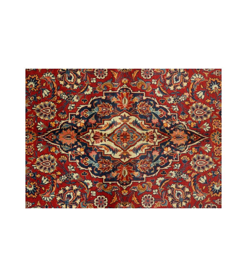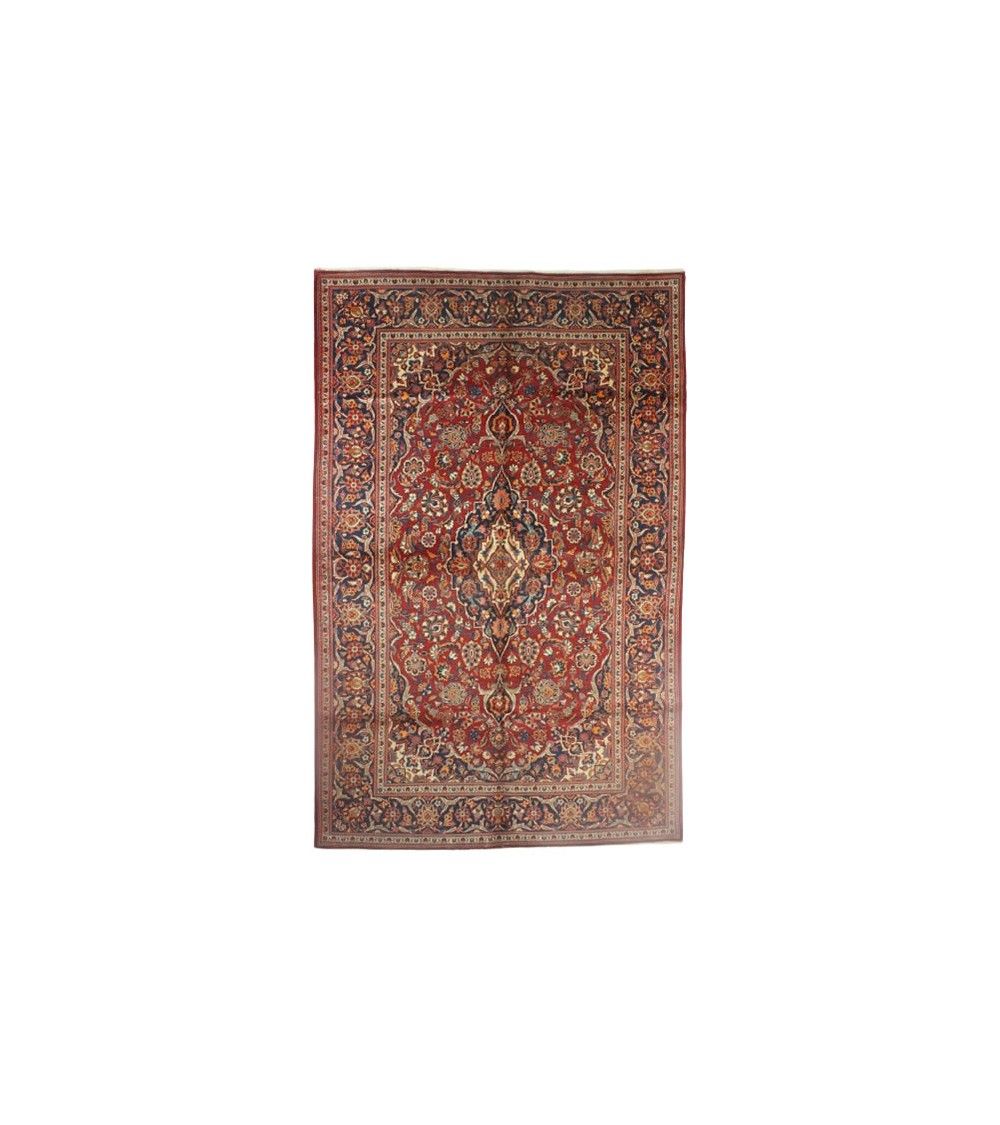 Les tapis Kashan sont souvent ornés de motifs complexes et élaborés, comprenant des motifs floraux stylisés, des motifs en forme de médaillons centraux, des motifs de vigne et de feuillage, ainsi que des motifs géométriques. Ces motifs sont exécutés avec une grande précision et une attention aux détails. Les tapis Kashan sont souvent ornés de motifs complexes et élaborés, comprenant des motifs floraux stylisés, des motifs en forme de médaillons centraux, des motifs de vigne et de feuillage, ainsi que des motifs géométriques. Ces motifs sont exécutés avec une grande précision et une attention aux détails. Les tapis Kashan sont tissés avec une densité de nœuds élevée, ce qui leur confère une grande résistance et une longue durée de vie. Cette densité de nœuds contribue également à la clarté des motifs et à la netteté des détails. Les tapis Kashan sont fabriqués à partir de laine de haute qualité, souvent d'agneaux, et teints avec des teintures naturelles. Cela contribue à la richesse des couleurs et à la durabilité du tapis.
