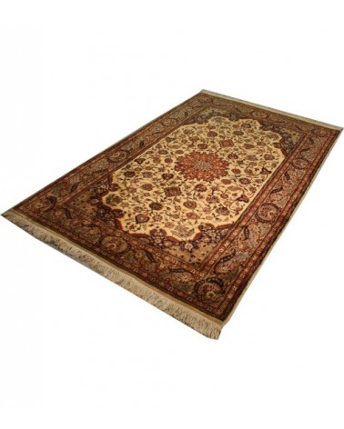 Ce tapis est fabriqué dans la ville d’Ispahan (ou Isfahan selon la prononciation) dans le sud-ouest de l’Iran. Les tapis d’Ispahan sont considérés aujourd’hui comme les plus beaux de tous les tapis persans. Ils se caractérisent par une densité très élevée, des motifs richement détaillés et une haute qualité des matières. Les tapis Ispahan sont à considérer comme des œuvres artisanales de premier choix.