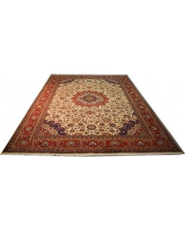 Ce tapis est fabriqué dans la ville d’Ispahan (ou Isfahan selon la prononciation) dans le sud-ouest de l’Iran. Les tapis d’Ispahan sont considérés aujourd’hui comme les plus beaux de tous les tapis persans. Ils se caractérisent par une densité très élevée, des motifs richement détaillés et une haute qualité des matières. Les tapis Ispahan sont à considérer comme des œuvres artisanales de premier choix.